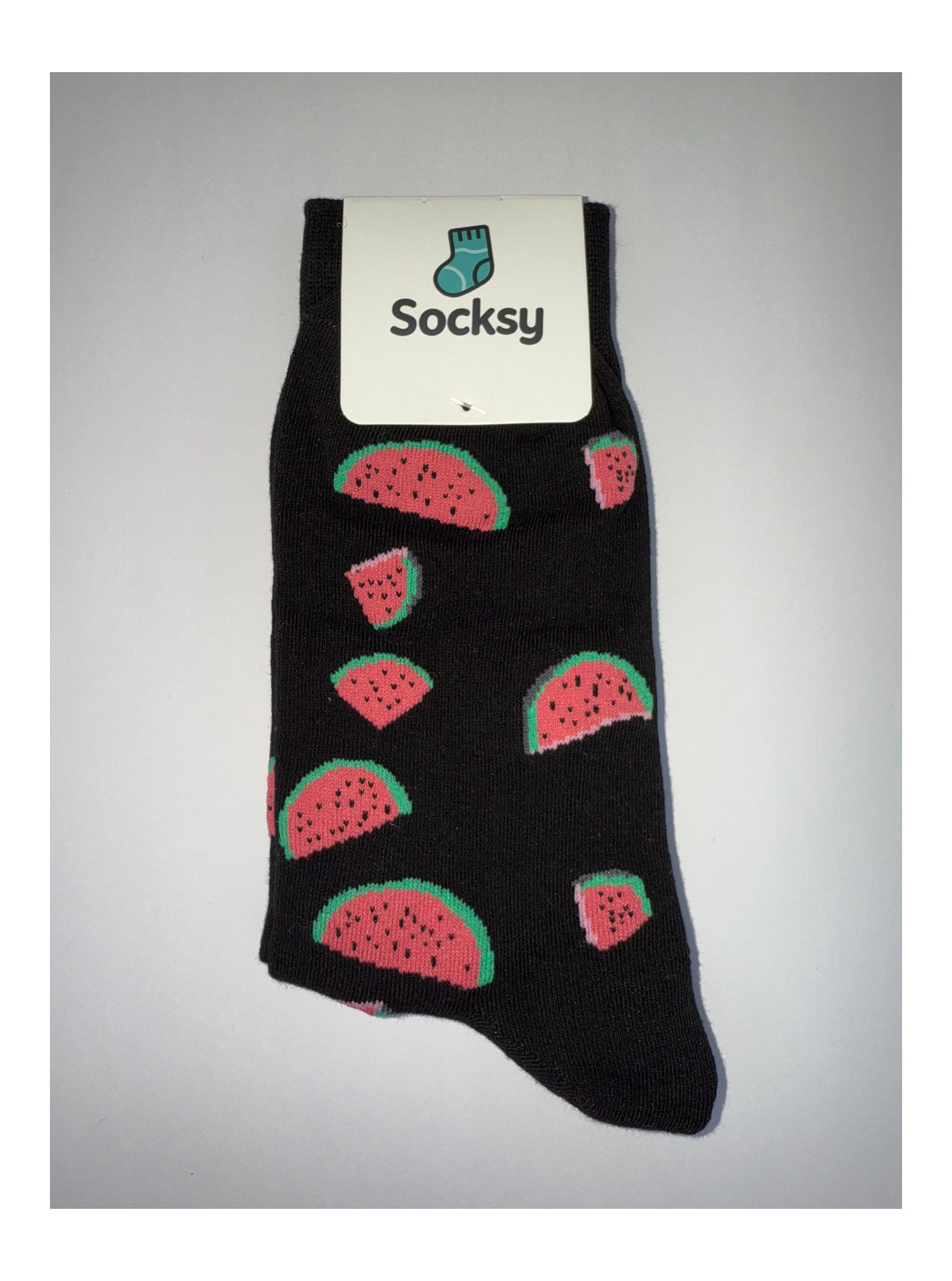 ake a bite out of boring socks—Melon Mood is here to freshen things up. Featuring vibrant watermelon slices splashed across a jet-black background, these socks are your go-to for juicy vibes and playful flair. Made from a soft, breathable cotton blend (80% cotton, 15% nylon, 5% spandex), they’re designed to stay up, stretch right, and feel comfy all day long. Whether you’re lounging poolside, hitting the farmer’s market, or just adding color to your day, this pair delivers bold personality with every step.