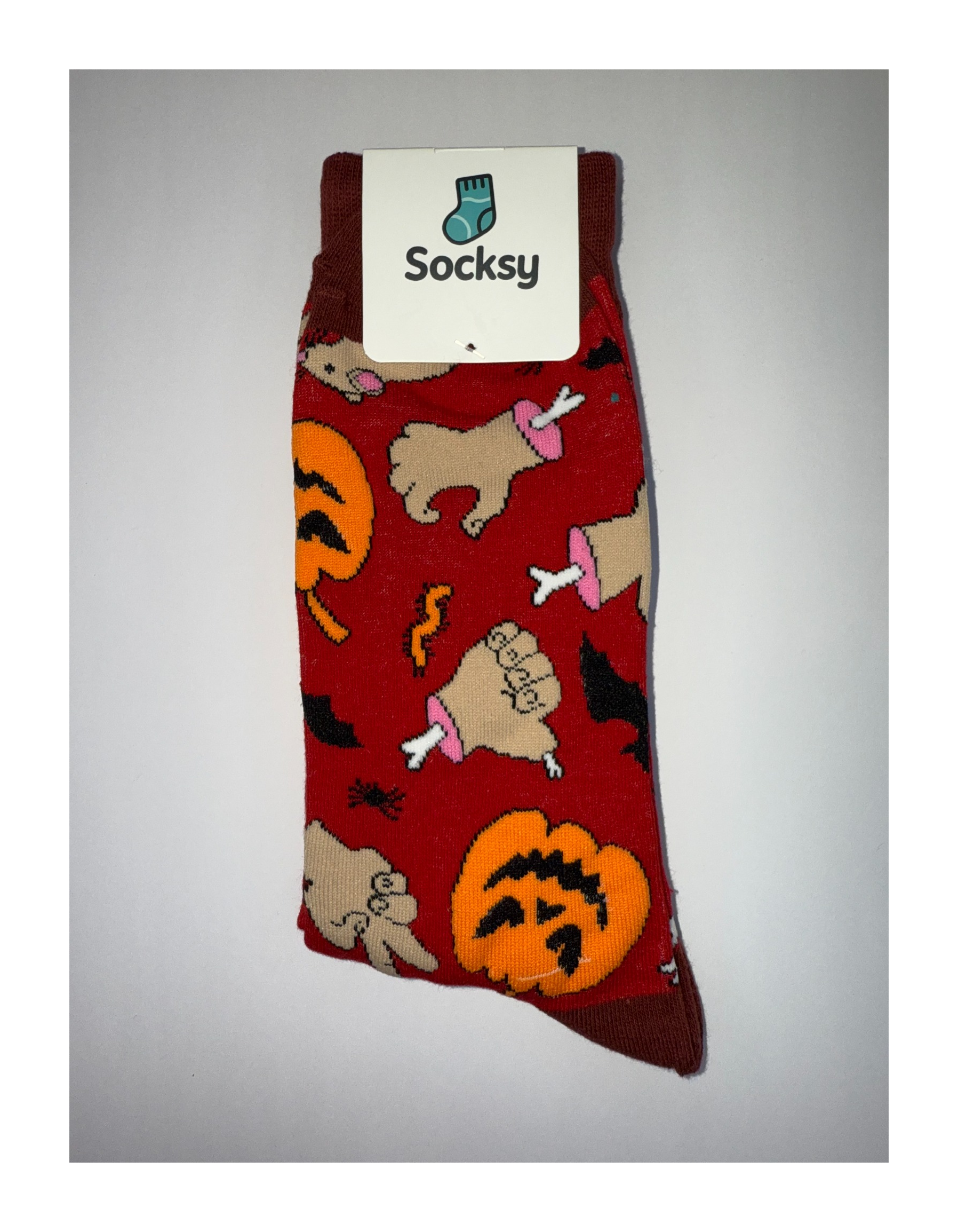 Guts, ghouls, and grins — Monster Mashup is for those who like their Halloween with a little extra bite. These socks feature pumpkin heads, flying bats, bones, and dismembered limbs on a blood-red background. It’s spooky, cheeky, and just the right amount of creepy.